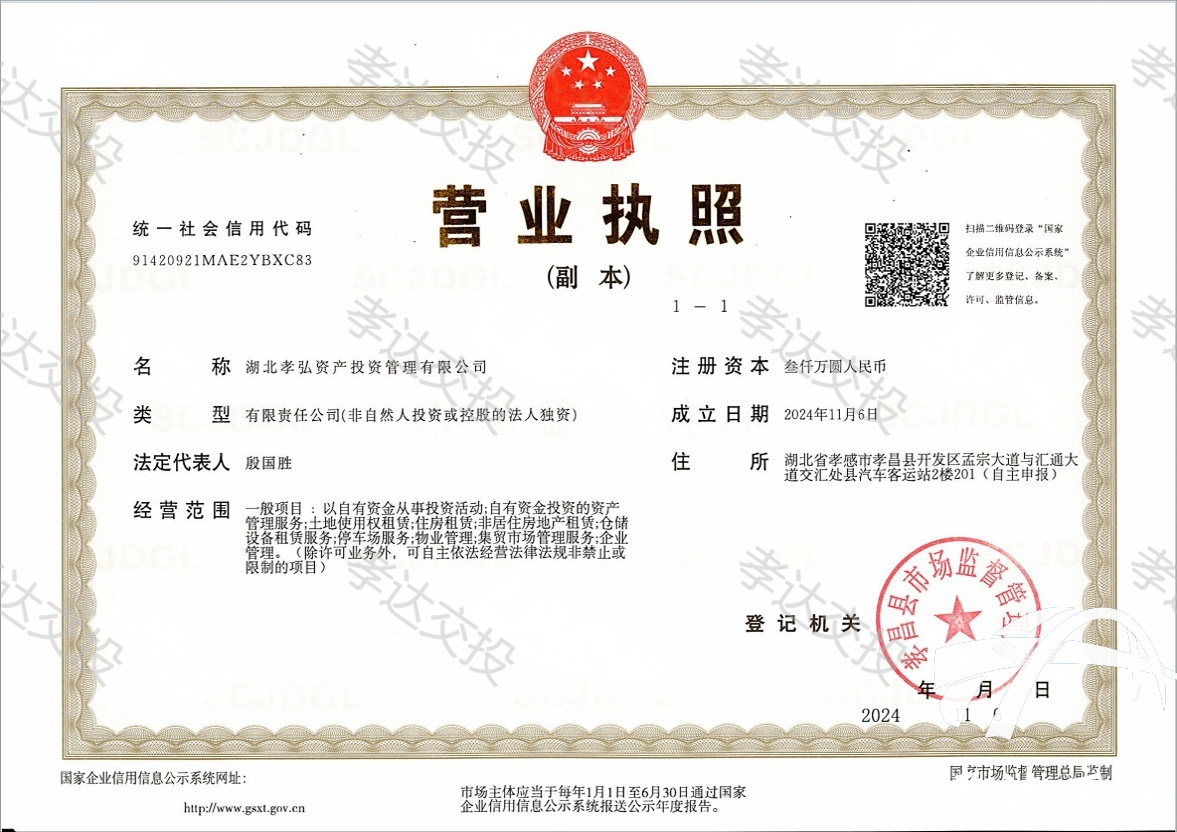 11月6日,湖北孝弘資產(chǎn)投資管理有限公司注冊成立,注冊資本3000萬元,是湖北孝達交通投資有限公司全資子公司。