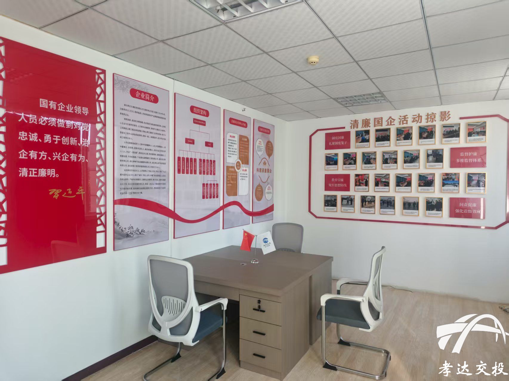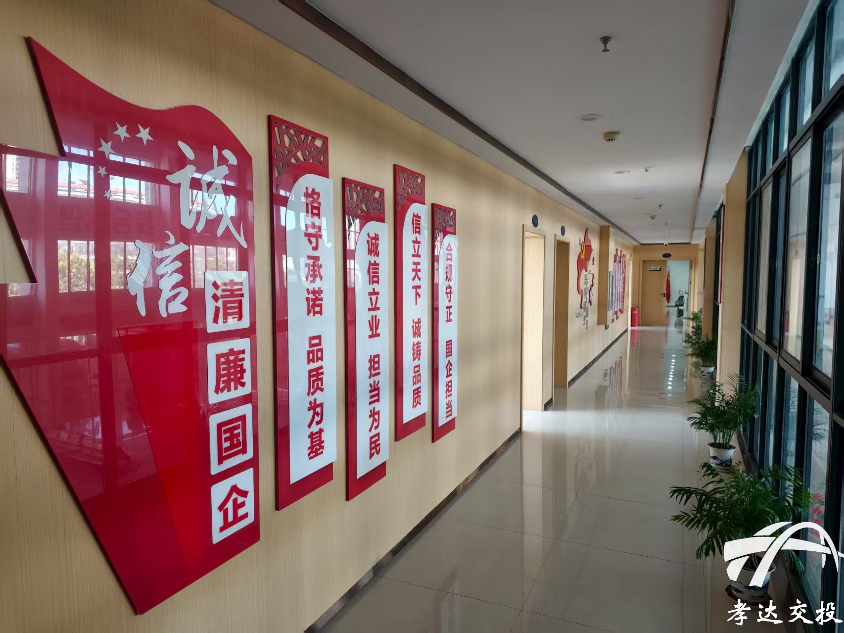 近日,孝達(dá)交投充分利用公司走廊和辦公室墻體空間,精心打造了集觀賞性、藝術(shù)性和教育性于一體的“清廉文化示范區(qū)”,在各辦公室還懸掛廉潔文化書(shū)法作品,抬頭可見(jiàn)“廉”景、行走可沐“廉”風(fēng)。順著“清廉文化教育走廊”的指示標(biāo)語(yǔ)到“廉潔教育”活動(dòng)室,活動(dòng)室文化墻充分融入國(guó)企政治建設(shè)、制度建設(shè)、人才建設(shè)、文化建設(shè)的“廉”元素,并以圖文展板相結(jié)合的方式,營(yíng)造了崇廉尚潔的濃厚氛圍。公司還設(shè)置特色廉政文化櫥窗,向群眾宣傳“廉”故事,這些只是孝達(dá)交投積極開(kāi)展“清廉國(guó)企”建設(shè)的一個(gè)縮影,將廉潔文化以“潤(rùn)物細(xì)無(wú)聲”的方式滲透到每一名干部職工心中,讓全體員工在工作中接受“潛移默化”的廉潔文化教育。