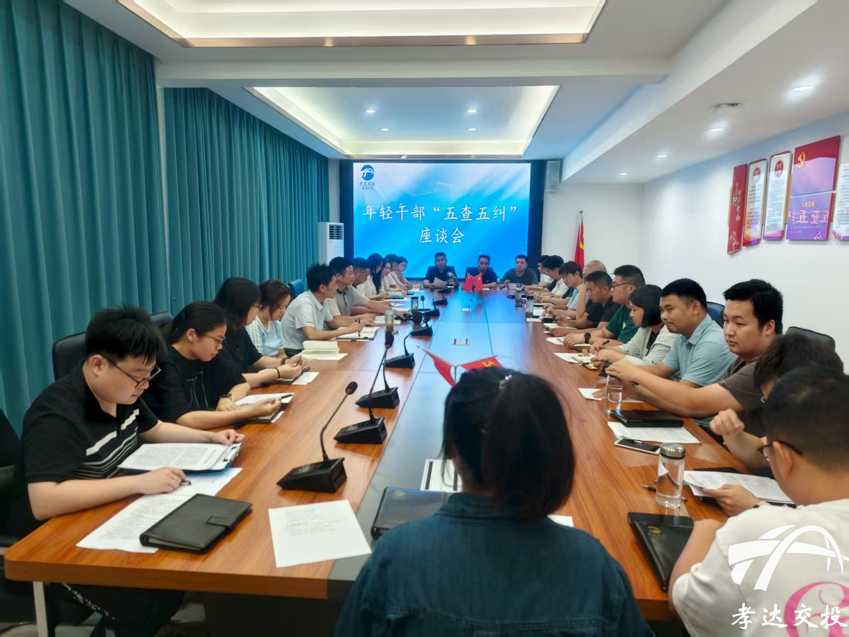 為進一步加強對年輕干部的教育、管理和監(jiān)督,引導其系好廉潔從業(yè)“第一??圩?rdquo;,8月5日,孝達交投組織27名35歲以下年輕干部召開座談會。座談會聚焦年輕干部思想動態(tài)、作風表現(xiàn)、“五查五糾”等情況,進行了一次深入的“政治體檢”和思想洗禮。公司紀委書記洪劍東,副總經(jīng)理殷國勝、張鋒出席會議。